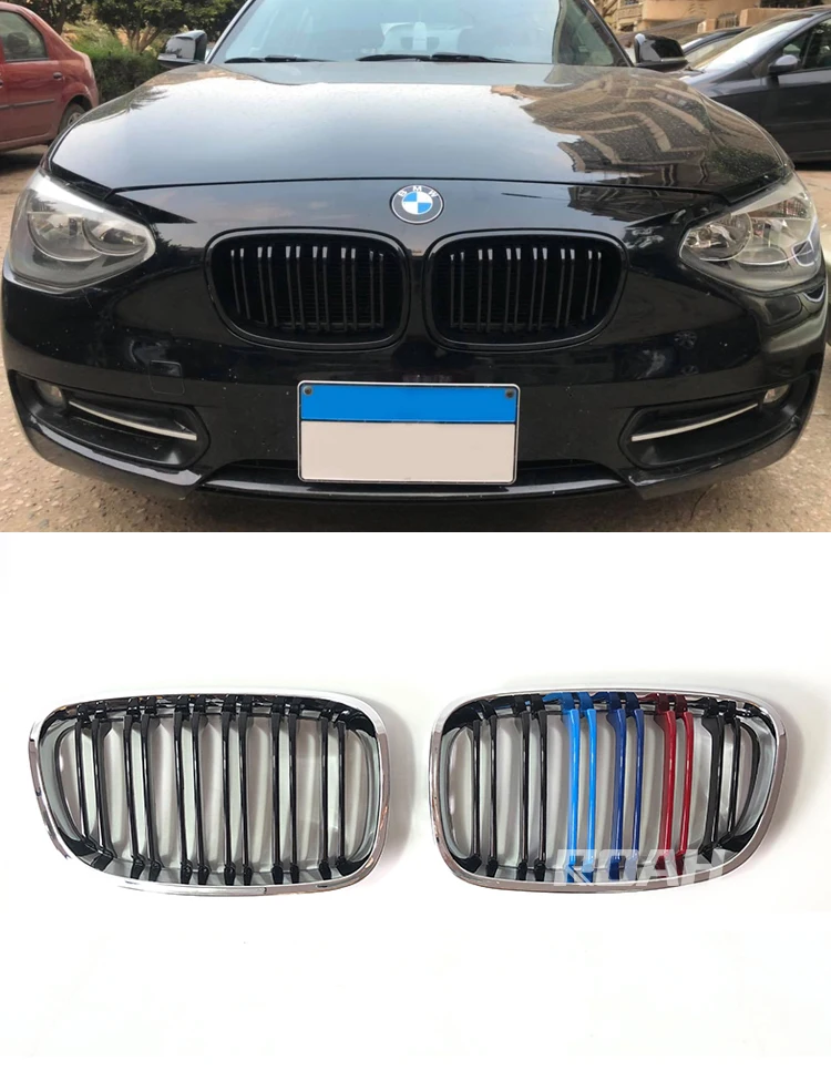 Front Bumper Kidney Grill Double Slat Chrome M Design Grille Fit For BMW 1 Series F20 F21 2012 2013 2014 Car Styling Accessories
