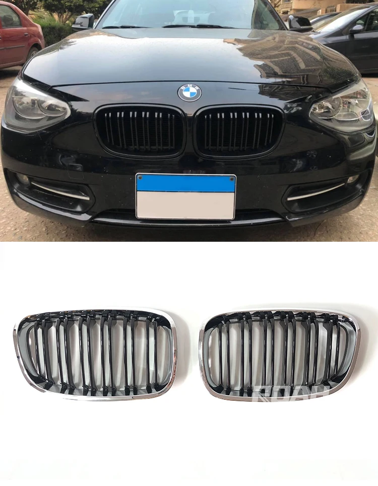 Car Front Bumper Kindey Grill Double Slat Bar Chrome Silver Black Grille For BMW 1 Series F20 F21 2012 2013 2014 Racing Grilles