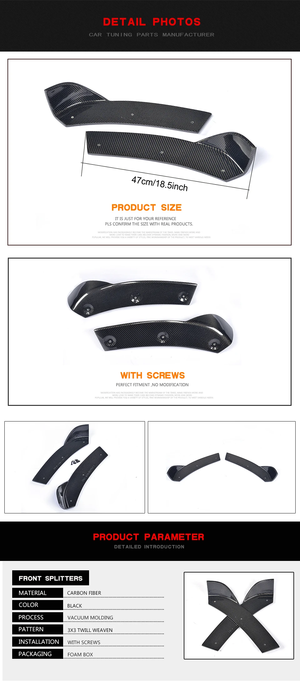 2. Installation: Precision holes, free self-tapping screws and glue tape included in the package for easy installation, perfect fitment, no modification.