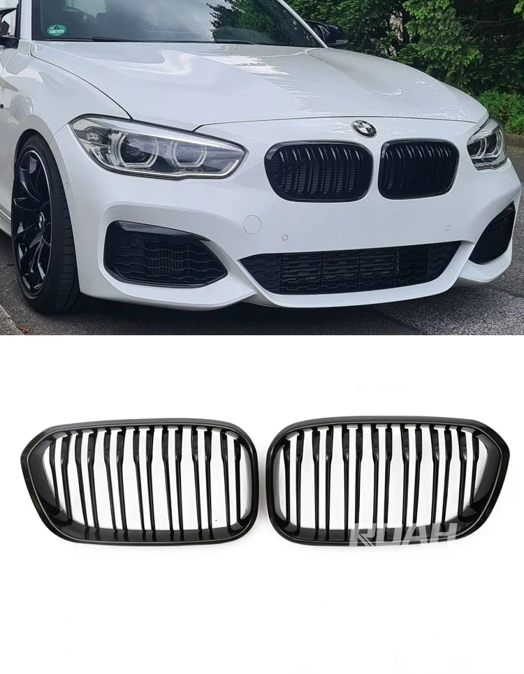 Front Kindey Grill Gloss Black Double Slat Grille For BMW 1 Series F20 F21 LCI 2016 2017 2018 2019 Dual Bar Auto Accessories
