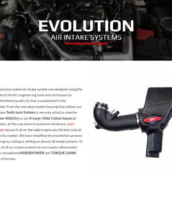 This Evolution Air Intake System uses a custom designed and dyno-tuned intake tube to produce impressive power gains while retaining proper fuel trims eliminating check engine lights.