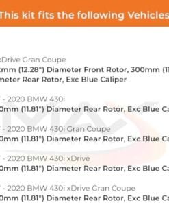 Front and Rear Brake and Rotor Kit: Our brake kit comes with premium brake rotors engineered to match OEM specifications for durability, reliability, and stability. Paired w/ our carbon ceramic brake pads w/ hardware to deliver consistent, no noise, and low dust braking. Ideal for Value-Conscious Drivers: This brake kit is designed for everyday drivers seeking a cost-effective solution, perfect for cars, SUVs, and light-duty trucks. This makes it an excellent choice for commuting, urban traffic, and family trips. Complete Brake Kit Replacement: This brake kit includes 2x front disc brake rotors + 2x rear disc brake rotors + 2 sets of carbon ceramic brake pads (hardware included), ready for install and no modification needed. Perfect Fit for Your Vehicle: This automotive replacement brake kit is compatible with 2013 2014 2015 2016 2017 2018 BMW 320i xDrive, 2013 2014 2015 2016 328i/xDrive/GT xDrive & 2017 2018 330i/xDrive/GT xDrive 2019 & 2014 2015 2016 428i w/12.28″ Front Rotor, 2017 2018 2019 2020 430i, xDrive,GT xDrive, 430i Gran Coupe w/11.81″ Rear Rotor Peace of Mind Solution: Enjoy a hassle-free 30-day returns & 1-year unlimited mileage warranty. Shop with confidence and discover the simplicity and effectiveness of our braking solutions.