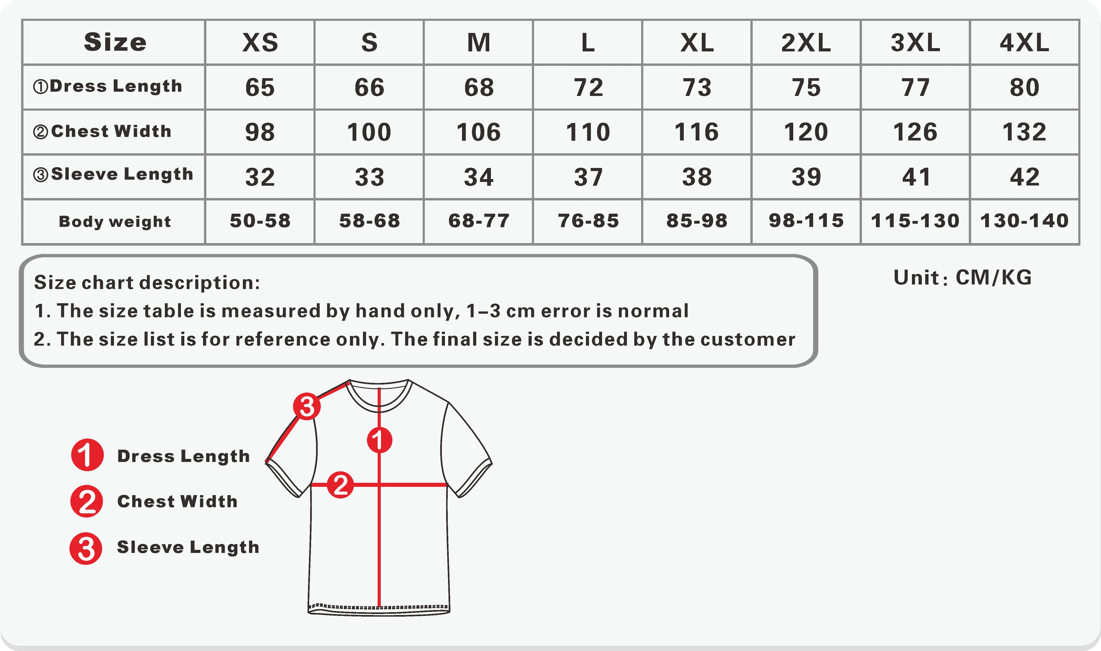 | Size | S, M, L, XL, XXL, XXXL, XXXXL, 5XL |
