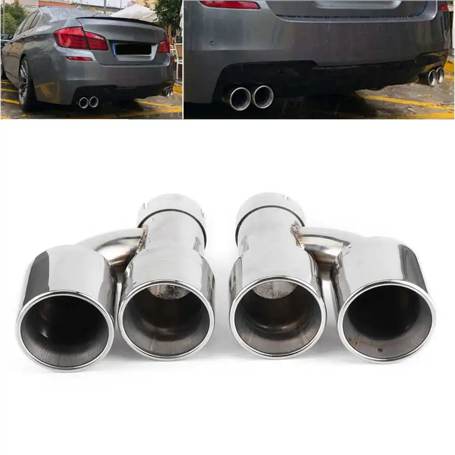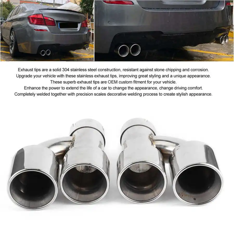 Pair Car Exhaust Pipe 4 Outlet Tail Throat Muffler Tip Stainless Steel Sliver Chrome Fit for 5 Series F10 12-19