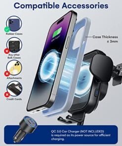 The Wireless Car Charger, 15W Fast Charging Auto-Clamping Car Mount is a great device for those who are always on the go and need to charge their phone quickly and efficiently while driving. This charger is designed to hold your phone securely in place while also charging it wirelessly, which is a great feature for those who do not want to deal with the hassle of cords and cables.The auto-clamping feature of this car mount is especially useful, as it allows you to quickly and easily secure your phone in place with one hand. The charger is also compatible with a wide range of phones, including those with larger screens, which is a big plus for those who have bigger phones.The 15W fast charging feature is another great aspect of this car mount, as it allows you to charge your phone quickly and efficiently while on the go. This is especially useful for those who are traveling long distances and need to keep their phone charged for navigation and communication purposes.The build quality of the Wireless Car Charger, 15W Fast Charging Auto-Clamping Car Mount is also very good, as it feels sturdy and well-made. The design is sleek and modern, which is a nice touch, and the mount can be easily installed in your car without any tools or complicated instructions.Overall, if you’re in need of a reliable and efficient car mount that can also charge your phone wirelessly, the Wireless Car Charger, 15W Fast Charging Auto-Clamping Car Mount is a great choice. It’s easy to use, works well with a wide range of phones, and is built to last, making it a worthwhile investment for anyone who spends a lot of time on the road.